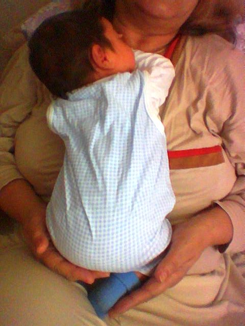 ju! Vuk se naruckao posle kupanja ali nikako da zaspi a mama ga uslikava mobilnim telefonom. Mislim da sam ovo slikala neposredno posle kijanja :)